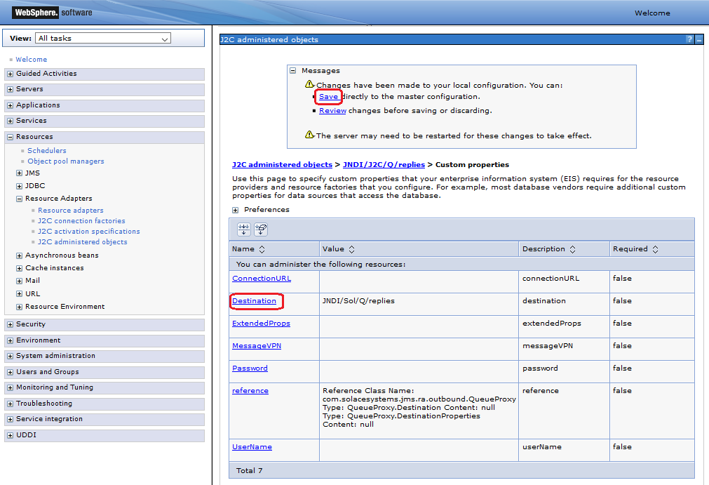 Solace_JMS_Authentication_Scheme=AUTHENTICATION_SCHEME_BASIC;Solace_JMS_SSL_TrustStore=___Path_or_URL___;Solace_JMS_SSL_TrustStorePassword=___Password___;Solace_JMS_SSL_TrustStoreFormat=jksiii. Click on the "Apply" button.iv. Click the "Save" link to commit the changes to the application serverThis section demonstrates how to configure the Solace event broker to support the transaction processing capabilities of the Solace JCA Resource Adapter. In addition, code examples are provided showing JMS message consumption and production over both types of Enterprise Java Bean transactions: Container-Managed-Transactions (CMT) and Bean-Managed-Transaction (BMT) configuration.